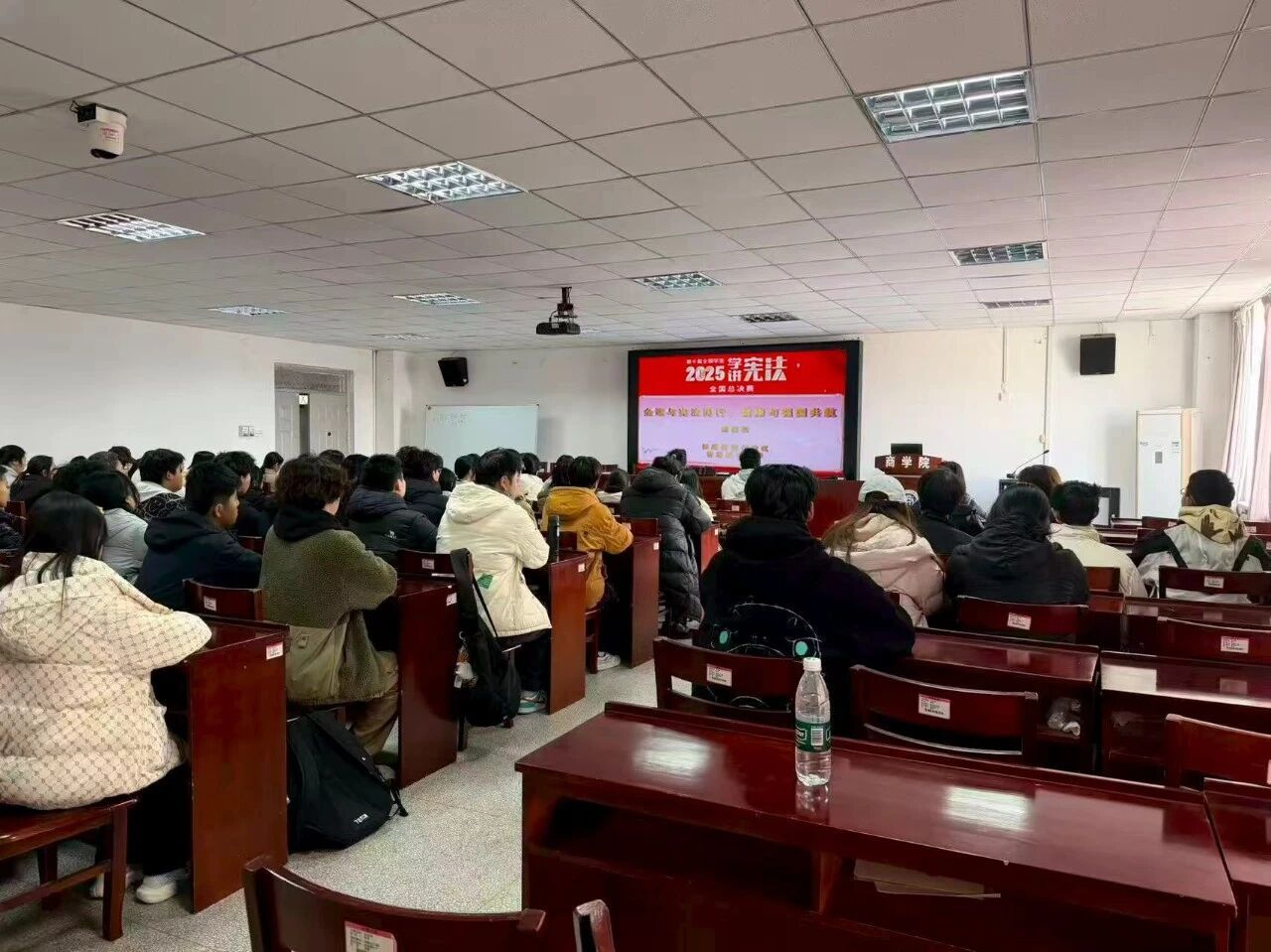 活动分为主题宣讲、互动问答和集体宣誓三个环节。校“青马工程”第十五期大学生骨干培训班学员张莎莎从宪法根基与青年使命出发,阐述宪法对个人与国家的守护作用;校学生会朱佳玉同学则围绕青春与宪法展开论述,号召同学们恪守宪法精神,勇担普法使命,以青春为笔,绘就法治校园多彩图景。宣讲后的互动问答,进一步加深了同学们对宪法精神的理解。