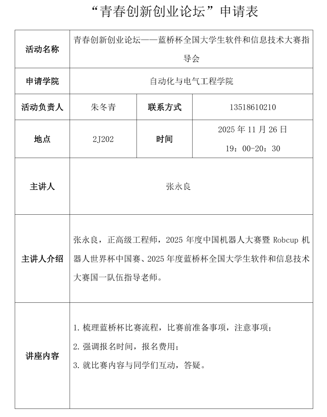 青春创新创业论坛——蓝桥杯全国大学生软件和信息技术大赛指导会