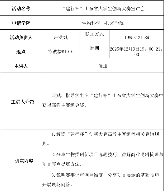 青春创新创业论坛——“建行杯”山东省大学生创新大赛宣讲会