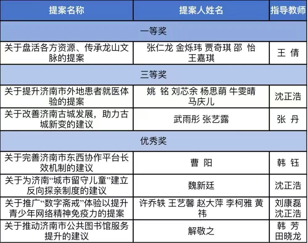 近日,由中共济南市委宣传部、济南市政协办公厅、济南市教育局、济南市学生联合会共同主办的2025年度济南市青少年模拟政协提案征集活动评选结果公布,我校获得一等奖1项、三等奖2项、优秀奖4项。