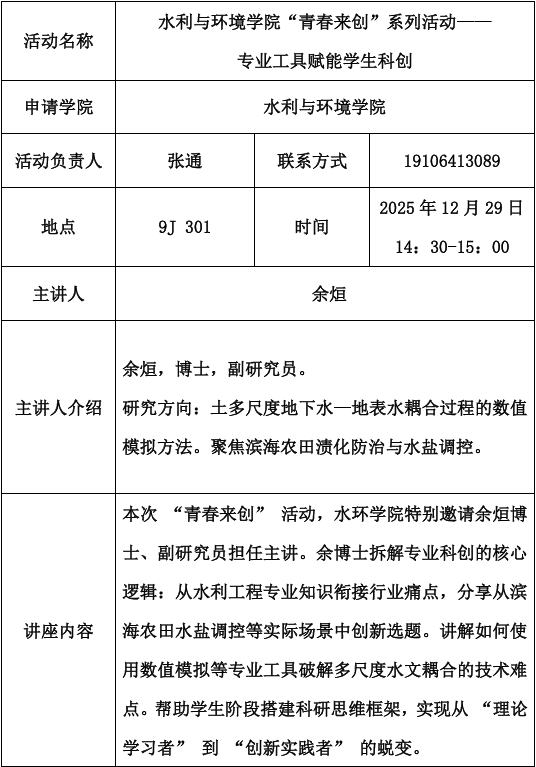 青春创新创业论坛——水利与环境学院“青春来创”系列活动——专业工具赋能学生科创