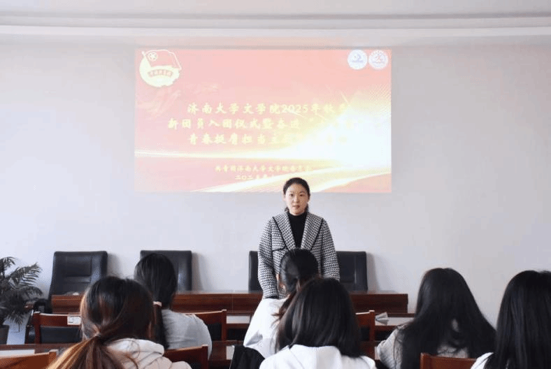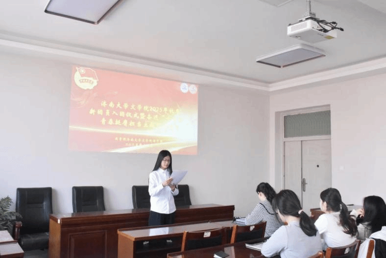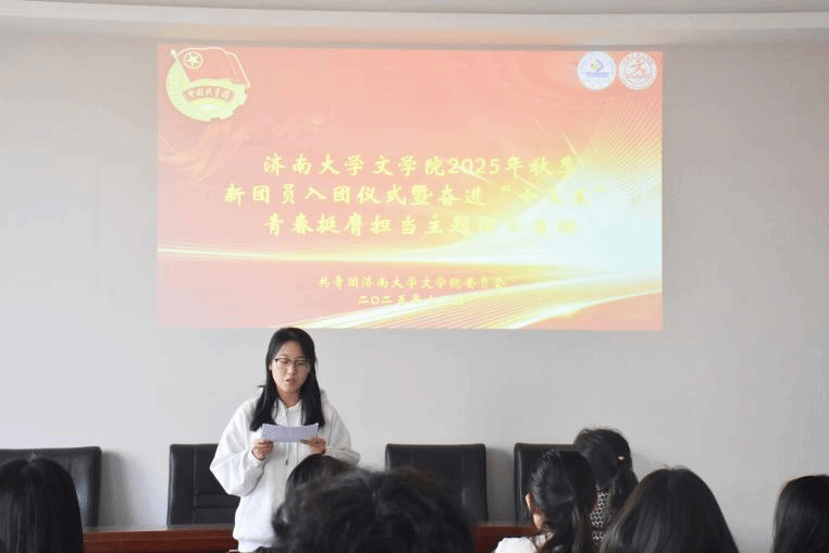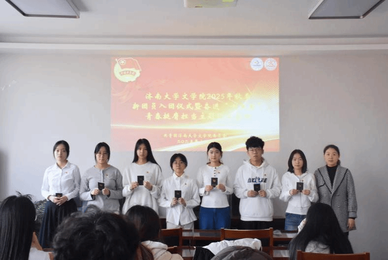为持续强化共青团队伍建设,凝聚青年力量,激发团组织活力,12月9日,文学院团委于3教418举行新发展团员入团仪式。2025年下半年新发展团员及优秀团员代表共同参加。