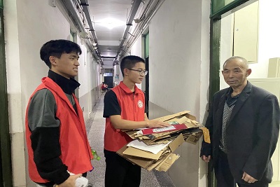 志愿者们首先通过网络查询、线上咨询等方式了解到了基本的垃圾分类知识后,认真地将宿舍里的垃圾按照干垃圾、有害垃圾、湿垃圾和可回收垃圾进行分类整理,并在各类垃圾前贴好相应的标识。在此过程中志愿者们不仅将自己宿舍内的垃圾进行了分类,而且积极带动周围宿舍同学参与其中。在垃圾分类的实践中,志愿者们进一步深化对垃圾分类的认识,也学习到更多垃圾分类的技巧与知识。为更好地践行绿色环保、垃圾分类的理念,志愿者提出将收集到的可回收垃圾送给宿管人员和每天清扫校园的环卫工人们,将其回收以实现资源利用的最大化。