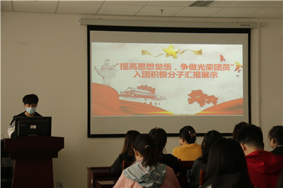 首先,团委书记魏文静老师强调:“共青团是党的助手和后备军,是党联系青年的桥梁和纽带,定期进行思想汇报对团组织及时了解、掌握入团积极分子的思想动态,提高入团积极分子思想觉悟具有重大意义”。随后,入团积极分子开始上台汇报。其中,焦郁荣同学结合今年寒假带队参加社会实践活动的经历,以“志愿服务”为切入点,抒发了强烈的入团意愿。王婷玉同学在会议上以“为人民服务”为主线,向大家展现了中国共产党披荆斩棘、砥砺奋斗的精神,她表示:“青年应树立远大理想,建立清晰的大学目标,奋发向上,为祖国做贡献”。她号召同学们要敢于直面困难,克服困难,要不怕吃苦,奋勇拼搏。通过学习和交流,同学们深刻意识到担当一名合格团员的重要意义与时代价值,并表示要积极投身中华民族伟大复兴的事业,在矢志奋斗中谱写新时代青春之歌。
