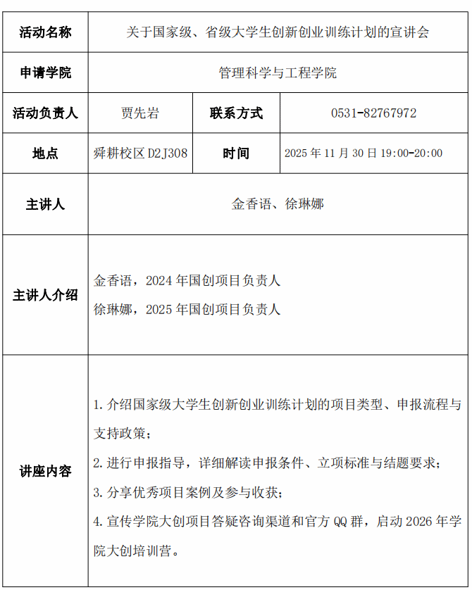 青春创业论坛——“建行杯”山东省大学生创新大赛宣讲会