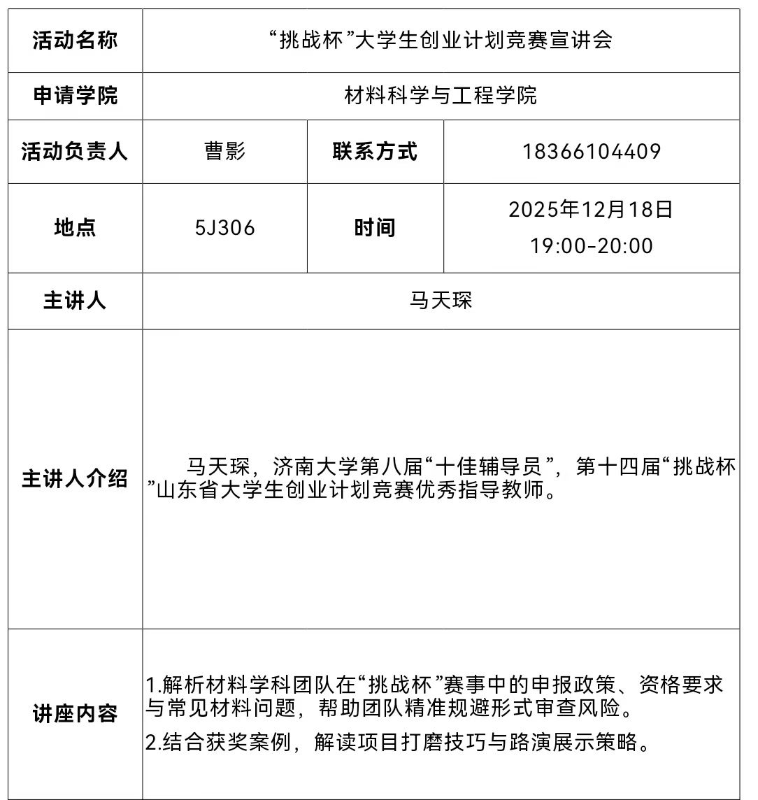 青春创新创业论坛--“挑战杯”大学生创业计划竞赛宣讲会