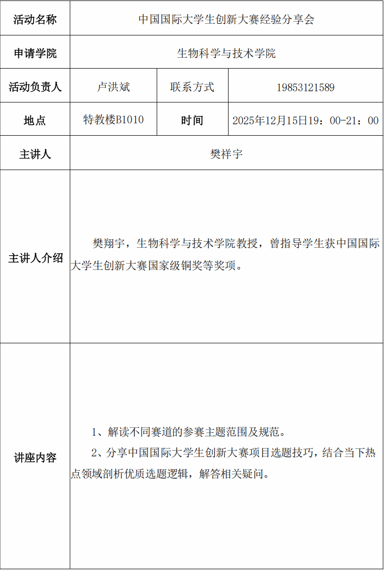 青春创新创业论坛——中国国际大学生创新大赛经验分享会
