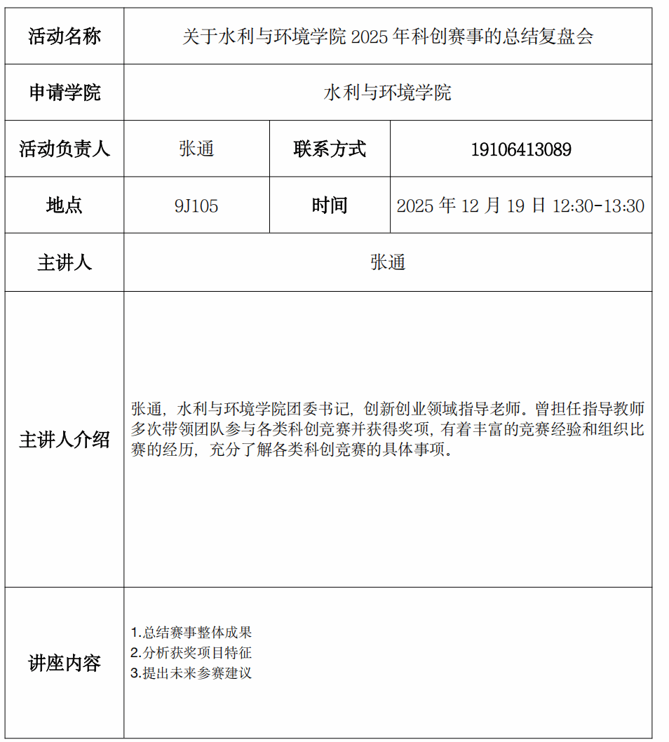 青春创业论坛——关于水利与环境学院 2025 年科创赛事的总结复盘