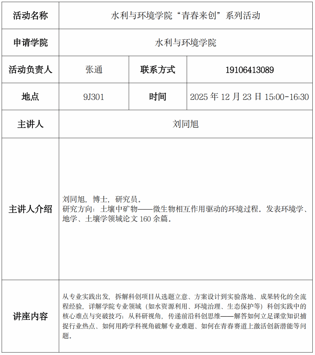 青春创新创业论坛——水利与环境学院“青春来创”系列活动
