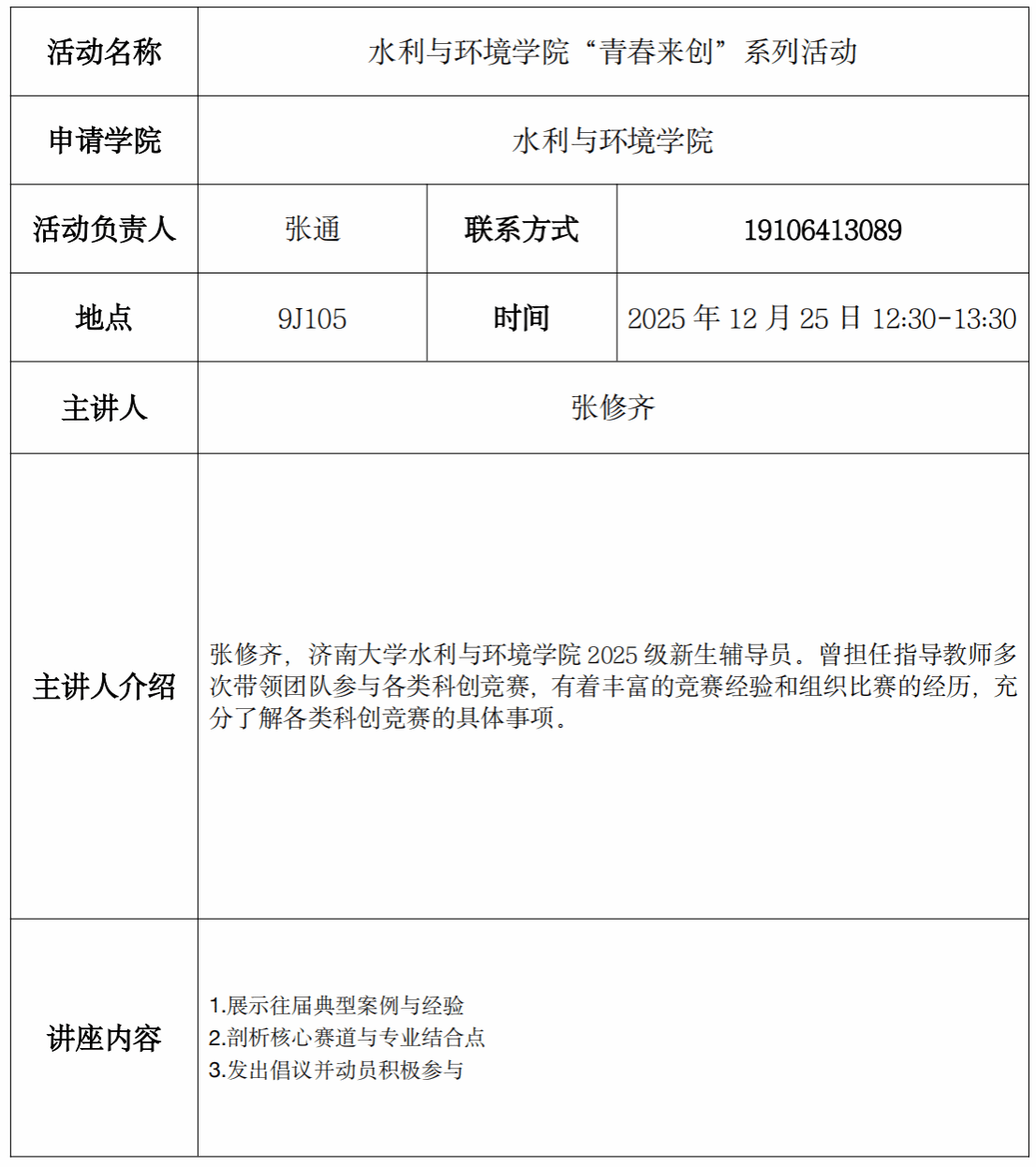 青春创新创业论坛——水利与环境学院“青春来创”系列活动