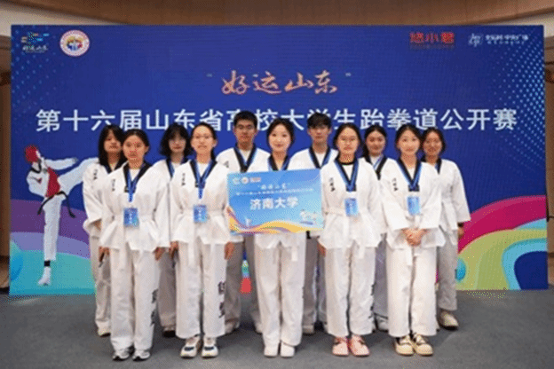 近日,“好运山东”第十六届山东省高校大学生跆拳道公开赛在济南市历下区全运村中央广场圆满落下帷幕,我校尚动跆拳道协会代表济南大学参加本次赛事,全体队员乘势而上、奋勇争先,最终斩获山东省团体总分第二名的优异成绩。