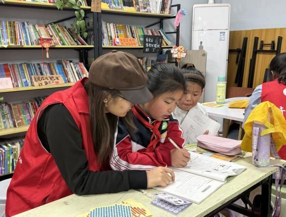 活动现场,志愿者们面对面地为孩子们答疑解惑。针对孩子们在作业中遇到的困惑,志愿者们耐心讲解,引导孩子们主动思考,帮助他们从多个角度探索解题思路,并及时解决课业问题。完成课业辅导后,志愿者们陪伴孩子们阅读课外书籍,并为孩子们提供合适的学习方法。通过这些举措,志愿者们为孩子们打造了一个温馨、充实的课后学习空间,让“四点半课堂”成为孩子们收获知识、快乐成长的美好时光。